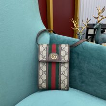 古驰2020新款包包 Gucci Ophidia系列手机包红绿织带帆布单肩斜挎包17.5CM