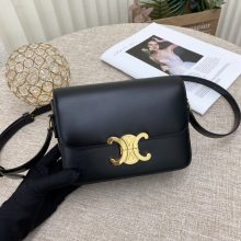 一件代发 Celine思琳188423黑色平纹牛皮复古凯旋门扣小方包斜挎女包18CM