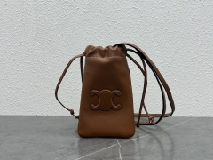 【P680】赛琳包包批发 Celine春夏新款抽绳手机包斜挎女包 100162黄褐棕