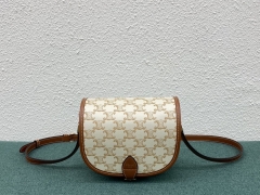【P900】思琳2021春夏摩登系列 Celine FOLCO 印花料斜挎马鞍包18CM 米白