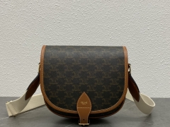 【P1050】Celine Folco 思琳秋冬新款复古帆布肩带斜挎马鞍包20CM 黄褐棕