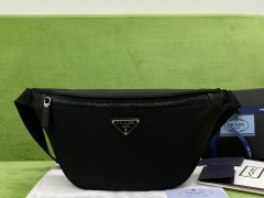 【P720】普拉达包包批发 Prada进口尼龙布运动风男女通用斜挎包腰包 黑色