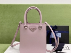 【P980】普拉达包包批发 Prada mini tote粉色光面牛皮迷你手提斜挎包