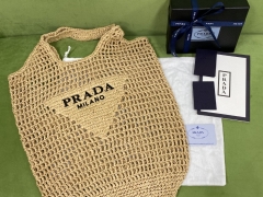 【P570】普拉达包包批发 Prada新款1BG424杏色简约休闲编织镂空包