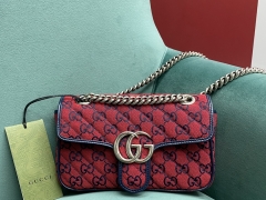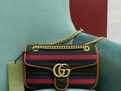 【P1350】古驰包包批发 Gucci Marmont 拼色进口布链条单肩包斜挎包