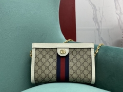 【P1130】古驰新款包包 Gucci ophidia织带老花配白皮链条单肩包斜挎包