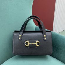 古奇1955马衔扣系列 Gucci新款原厂牛皮627323黑色手提箱形包28CM