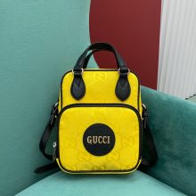 古驰女包货源 Gucci OTG系列新款625850黄色进口帆布斜挎手提包21CM