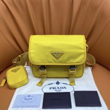 【P1020】一件代发 Prada普拉达新款三合一进口尼龙布单肩斜挎邮差包22CM 黄色