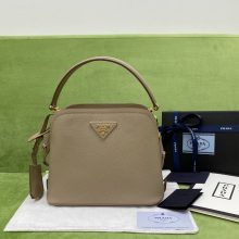 Prada女包批发 普拉达66664杏色Saffiano牛皮Matinee手提包21.5CM