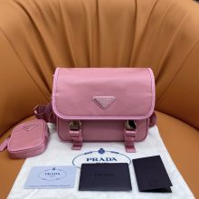 【P1020】普拉达包包批发 Prada男女共用款三合一粉色尼龙布单肩斜挎包包22CM