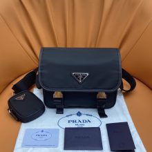 【P1020】Prada包包价格 普拉达22995黑色尼龙布男女通用单肩斜挎邮差包22CM