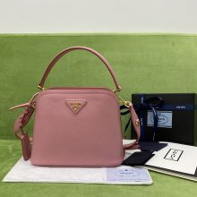 一件代发 Prada普拉达20年新款进口十字纹牛皮手提女包21.5CM 粉色