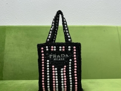 【P720】普拉达包包官网 Prada 2022新款草编彩色木球托特包 1BG425黑色