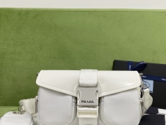 【P1320】Prada Pocket系列 普拉达1BD295白色尼龙布拼皮单肩斜挎包23CM