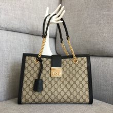 古驰包包批发 Gucci黑色大号Padlock购物袋链条单肩女包35CM