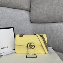 Gucci包包官网 古驰新色香蕉黄原厂牛皮波浪纹Marmont链条包单肩女包22CM