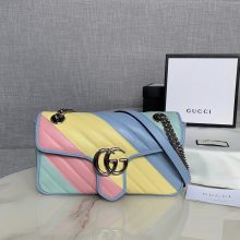 Gucci彩虹色包包 古驰443497马卡龙中号Marmont链条包单肩女包26CM