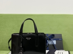 【P1350】Prada新款包包 普拉达亮面皮革几何轮廓手提包斜挎包 黑色
