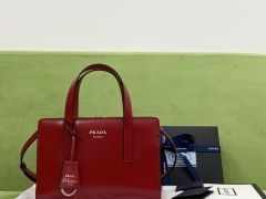 【P1350】Prada新款包包 普拉达红色亮面牛皮手提公文包斜挎包22CM