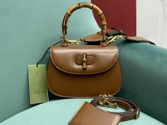【P1580】古奇21年秋冬新款女包 Gucci复古马鞍造型竹节包手提斜挎包 棕色