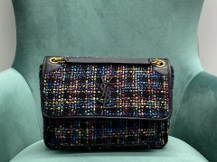 【P1280】圣罗兰新款包包 YSL全新花料编织Niki单肩斜挎包大号28CM
