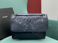 【P1430】YSL女包批发 圣罗兰经典款抓纹油腻牛皮Niki链条单肩斜挎包 海军蓝