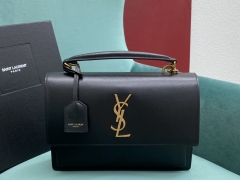 【P1500】圣罗兰经典女包 YSL Sunset黑色光面牛皮链条单肩包22CM 金扣