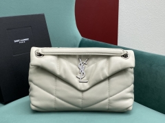 【P1430】圣罗兰经典女包 YSL577476白色绗缝羊皮包链条单肩斜挎包28CM 银扣