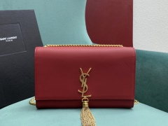 【P1130】圣罗兰经典女包 YSL红色牛皮链条包流苏晚宴手包354119 金扣
