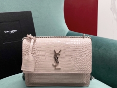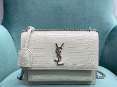 【P1500】YSL包包官网 圣罗兰442906白色鳄鱼纹牛皮Sunset日落包单肩女包 银扣