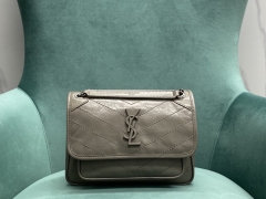 【P1320】圣罗兰包包价格 YSL Niki小号633160浅灰色链条单肩包22CM