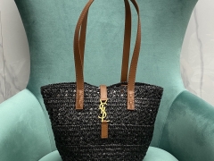 【P1430】YSL包包官网 圣罗兰685618黑色草编单肩女包菜篮子包38CM