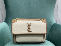 【¥1280】YSL Niki 圣罗兰新色棕色皮配帆布单肩包斜挎包28CM