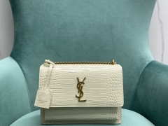 【P1500】圣罗兰包包货源 YSL Sunset鳄鱼纹日落包链条包442906米白色金扣