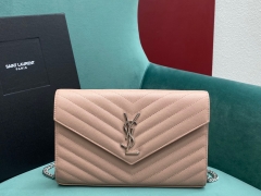 【P1130】YSL女包价格 圣罗兰377828球纹Woc链条信封包斜挎包 粉色银扣