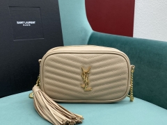 【P980】圣罗兰女包价格 YSL LOU系列V型球纹皮链条斜挎相机包 杏色