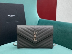 【P1020】YSL包包货源 圣罗兰393953灰色球纹皮链条斜挎包小号信封包