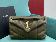 【P1430】YSL包包批发 圣罗兰经典款577476绗缝羊皮女包云朵包 绿色金扣
