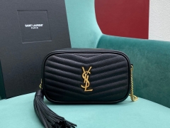 【P980】YSL包包批发 圣罗兰新款585040黑色球纹牛皮斜挎流苏包相机包