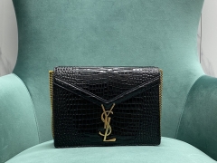 【P1580】YSL包包批发 圣罗兰532750黑色亮面鳄鱼纹Cassandra链条斜挎包
