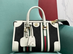 【P1580】Gucci包包官网 古奇715772白色皮拼黑色帆布手提斜挎包27CM