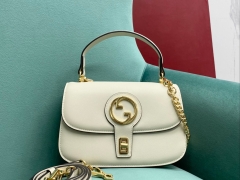 【P1650】古驰2023新款包包 Gucci Blondie双G圆扣光面牛皮手提包 735101白色