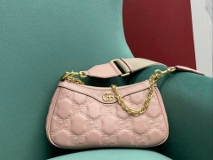 【P1020】古驰包包批发 Gucci Ophidia粉色压纹牛皮织带链条腋下包斜挎包