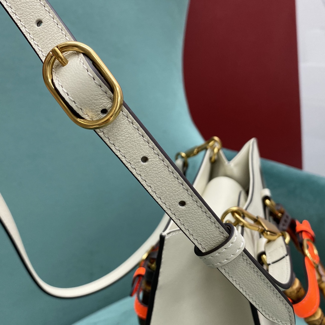 【P1280】古驰包包货源 Gucci Diana竹节包小号655661白色牛皮手提包20CM