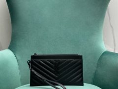 【P870】YSL MONOGRAM 圣罗兰584719黑色鱼子酱牛皮拉链手包23CM