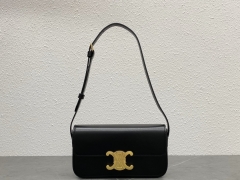 【P1350】Celine包包批发 思琳194142黑色进口牛皮凯旋门扣腋下包单肩包