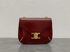 【P1620】Celine包包批发 赛琳199273厘子红全皮凯旋门扣链条方形包腋下包