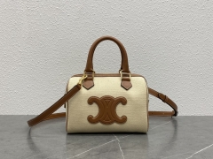 【P1170】Celine包包批发 赛琳197582麻布拼棕凯旋门小号波士顿枕头包