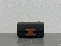 【P1280】Celine包包批发 思琳老花料棕色立体凯旋门皮扣链条单肩包